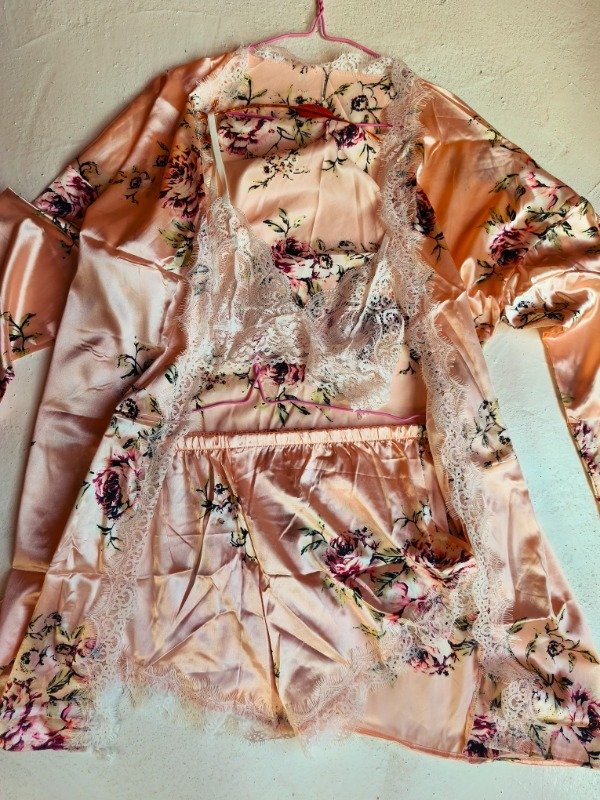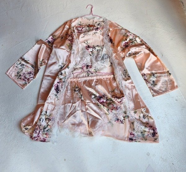 Batas seda 3 piezas beige caramelo66869